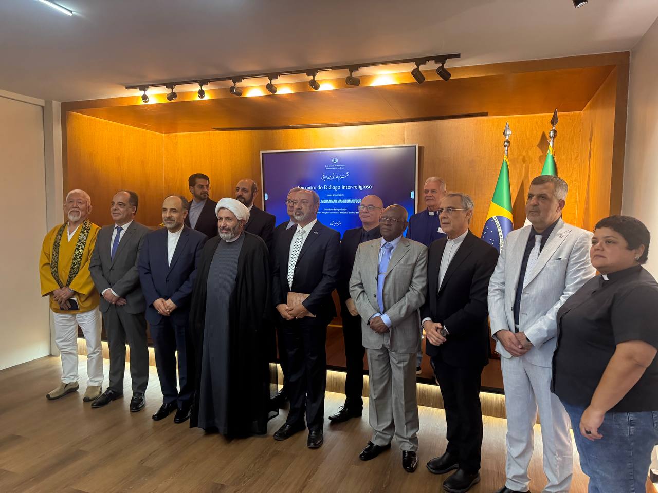 نشست هماندیشی نمایندگان ادیان با حضور عبدالله نکونام سفیر جمهوری اسلامی ایران در برزیل، حجت الاسلام والمسلمین محمدمهدی ایمانیپور رئیس سازمان فرهنگ و ارتباطات اسلامی در سفارت کشورمان در برازیلیا برگزار شد.